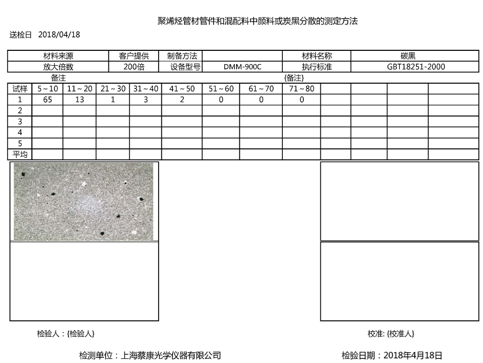 管材炭黑分析評級軟件DLT-3000是專門針對聚烯烴管材、管件和混配料中顏料或炭黑分散性試驗開發的完全符合國家標準-GB/T 18251-2000的顯微圖像分析評級軟件。同時也可以對顯微顆粒圖像進行分析和統計。